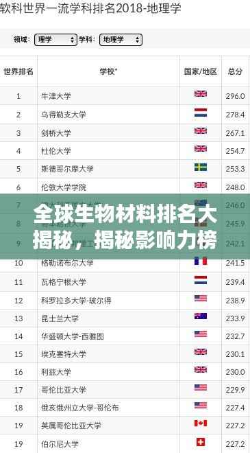 全球生物材料排名大揭秘,揭秘影响力榜单与背后的力量